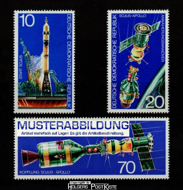 10 = Sojus U-Trägerrakete beim Start am 15.07.1975 (an Bord Raumschiff Sojus 19 mit den Kosmonauten Alexei Leonow und Waleri Kubassow)